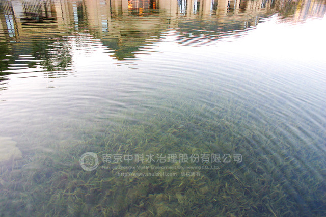 復(fù)地御香山二期景觀湖為新開挖人工湖體。業(yè)主要求通過建立健康、穩(wěn)定、經(jīng)濟(jì)的清水型生態(tài)系統(tǒng)來保護(hù)湖水水質(zhì),實現(xiàn)長效景觀性。水生態(tài)工程施工時間為2012年3月10日至5月30日??⒐ず?,復(fù)地御香山二期景觀湖水質(zhì)主要指標(biāo)達(dá)到 《國家地表水環(huán)境質(zhì)量標(biāo)準(zhǔn)》GB3838-2002 Ⅱ 類標(biāo)準(zhǔn),常年水體透明度在1.7米以上清澈見底,生態(tài)系統(tǒng)健康穩(wěn)定。