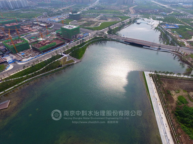 新川之心中央公園包括西區(qū)和東區(qū),西部湖區(qū)總面積約為95000m2,分為東西兩片水域,其中東湖水面面積約為60000 m2,西湖水面面積為35000 m2,常水位時(shí)平均水深約2m。由南京中科水治理股份有限公司對(duì)湖區(qū)進(jìn)行生態(tài)系統(tǒng)的構(gòu)建。