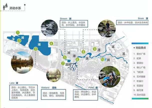 靈動(dòng)水系是新川之心的三大核心元素之一,涵蓋了湖泊、濕地、潭、溪、澗等多種表現(xiàn)方式,其中西區(qū)的兩個(gè)人工湖是水系的中堅(jiān)力量。