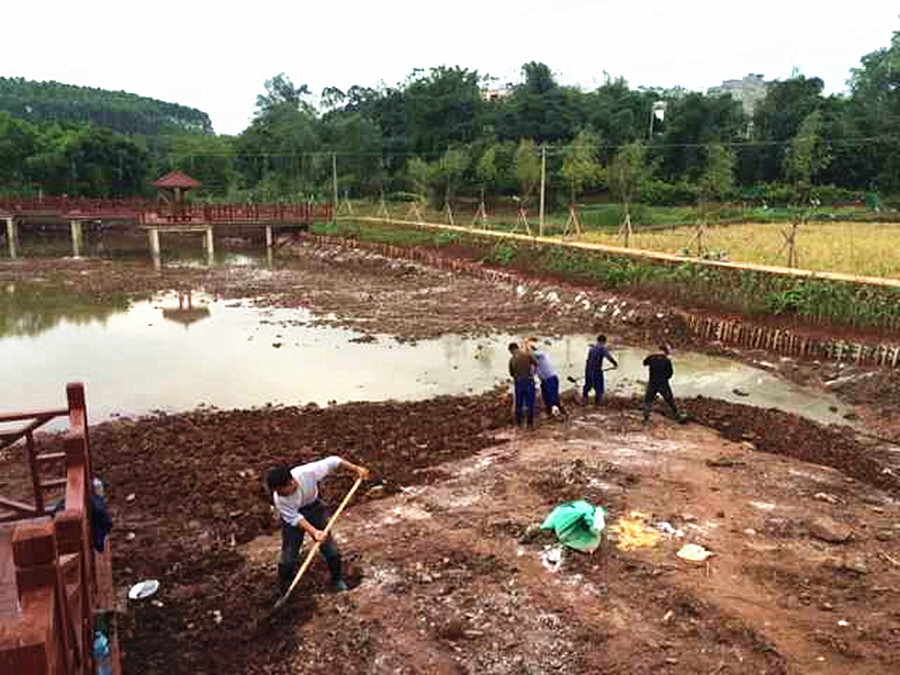 大塘鎮(zhèn)平天新坡生態(tài)綜合示范村鴛鴦湖水生態(tài)構(gòu)建與水質(zhì)提升工程項(xiàng)目是南京中科水治理股份有限公司在廣西南寧實(shí)施的“清水型生態(tài)系統(tǒng)構(gòu)建工程”之一,工程實(shí)施區(qū)為魚塘改造擴(kuò)建,建設(shè)水面面積3900平方米,平均水深1.8米。項(xiàng)目于2015年12月15日正式開工,2016年1月15日完工,并于2016年1月26日通過竣工驗(yàn)收。工程實(shí)施內(nèi)容主要有:基底改良工程、沉水植物群落構(gòu)建工程、挺水、浮葉植物群落構(gòu)建工程、魚類群落構(gòu)建工程、大型底棲動(dòng)物群落構(gòu)建工程等。