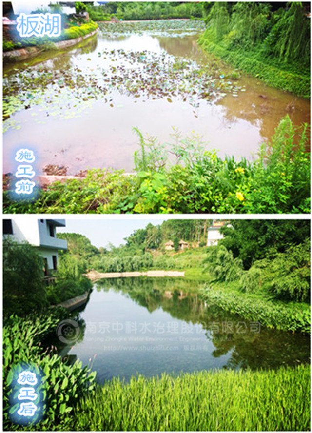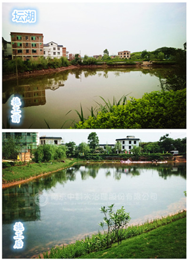 2015年12月12日,中科水治理參與的壇板坡景觀湖水生態(tài)構(gòu)建工程正式開工,景觀湖位于中心街區(qū)的東部,分為壇湖和板湖兩個(gè)獨(dú)立的水體,是典型的農(nóng)村污染型水體。水體總面積約15畝,平均水深1.5米,采用中科水治理獨(dú)創(chuàng)的“清水型生態(tài)系統(tǒng)構(gòu)建技術(shù)”,主要建設(shè)內(nèi)容包括基底改良、湖形重塑、微生物菌種投放、沉水植物群落構(gòu)建、挺水、浮葉植物群落構(gòu)建、魚類放養(yǎng)、大型底棲動(dòng)物投放等。2016年3月30日,項(xiàng)目順利通過驗(yàn)收。